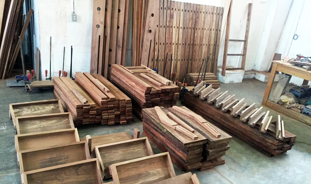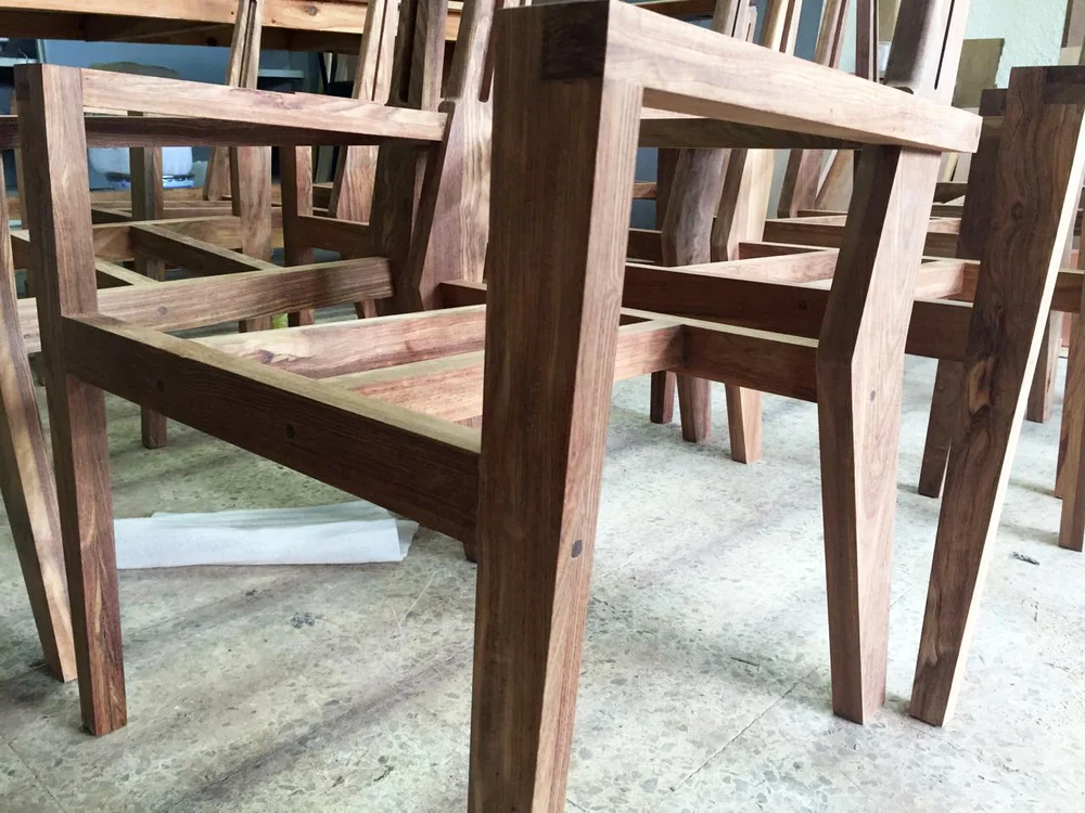 Producción a gran escala de distintas piezas en madera maciza de tzalam y chechen.